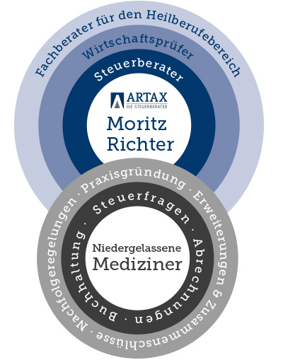 Moritz Richter verfügt als Ihr Ansprechpartner mit seiner Ausbildung zum Steuerberater, Wirtschaftsprüfer und Fachberater Gesundheitswesen über eine Fachkompetenz die in Deutschland nur wenige bieten.
